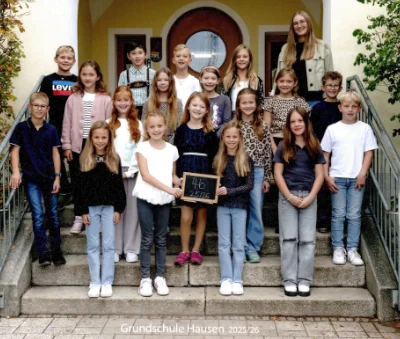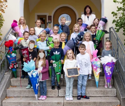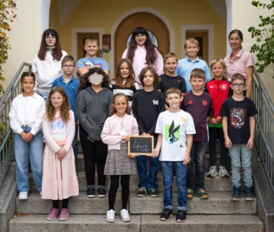 18 Kinder mit Klassenleiterin Frau Bernadette Hanner