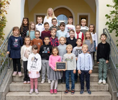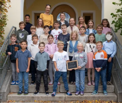 27 Kinder mit Klassenleiterin Frau Regina Forster